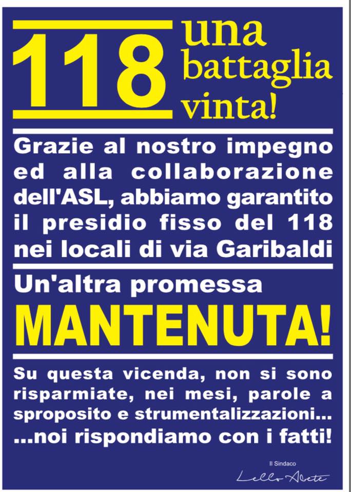 Vuole esprimersi sulla querelle 118, visto che è recente un nuovo manifesto a firma del Pd? Non le dà fastidio che si facciano polemiche e rivendicazioni personali anche su un servizio così importante per i cittadini che, fortunatamente, è rimasto in città?