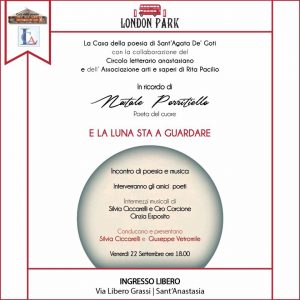 La Casa della Poesia di Sant’Agata De’ Goti in collaborazione con il Circolo Letterario Anastasiano e l’Associazione Arti e Saperi di Rita Pacilio, ricorda il poeta Natale Porritiello con un evento condotto in tandem dal poeta Giuseppe Vetromile e da Silvia Valeria Ciccarelli, cantante e nipote di Natale.