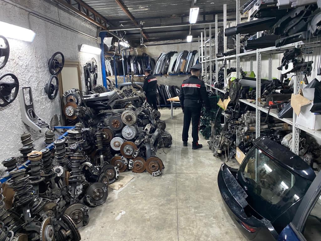 Pezzi di ricambi auto rubati, i Carabinieri sequestrano un capannone e denunciano una persona per ricettazione.