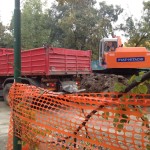 Come è ben visibile dalle foto allegate a questo articolo, la ditta responsabile dei lavori, come luogo di stoccaggio dei rifiuti, ha scelto, non si capisce in tutta onestà con quale criterio, il piazzale antistante alla scuola Elsa Morante (zona boschetto).