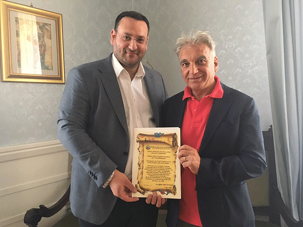 Artista vesuviano e insegnante presso l’Elsa Morante a Sant’Anastasia, è stato ricevuto dal sindaco Abete che gli ha consegnato una pergamena con una dedica.