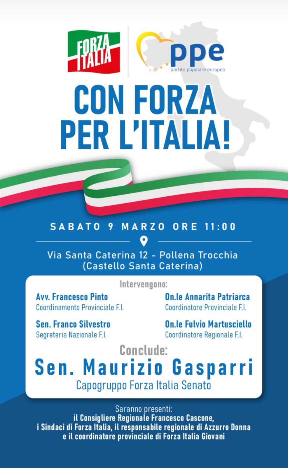 Domani, sabato 9 marzo, l’onorevole Maurizio Gasparri sarà in visita nell’area vesuviana in particolare: Sant’Anastasia, Pollena Trocchia, Somma Vesuviana e Castellammare di Stabia.