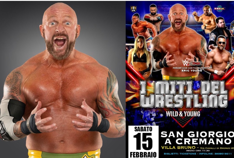 Il grande wrestling torna a Napoli: sabato 15 febbraio alle 17.30 in villa Bruno, San Giorgio a Cremano, si terrà lo spettacolo “I Miti del Wrestling: Wild and Young”, in cui lotterà l’ex due volte campione mondiale Eric Young, per la prima volta in Italia. Young, conosciuto anche come “the World Class Maniac” nella sua carriera mondiale ha lottato in WWE, TNA ed in altre importanti compagnie mondiali, dove ha sempre fatto incetta di titoli.