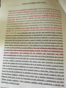 Tale annullamento, dunque, avviene sulla “scorta di una documentazione carente e non conforme alla vigente norma in materia (Legge Regione Campania n.10/82).” Quello che si contesta è la mancanza degli atti di legittimità perché il Comune non ha il parere della Soprintendenza. Alleghiamo copia della Raccomandata.
