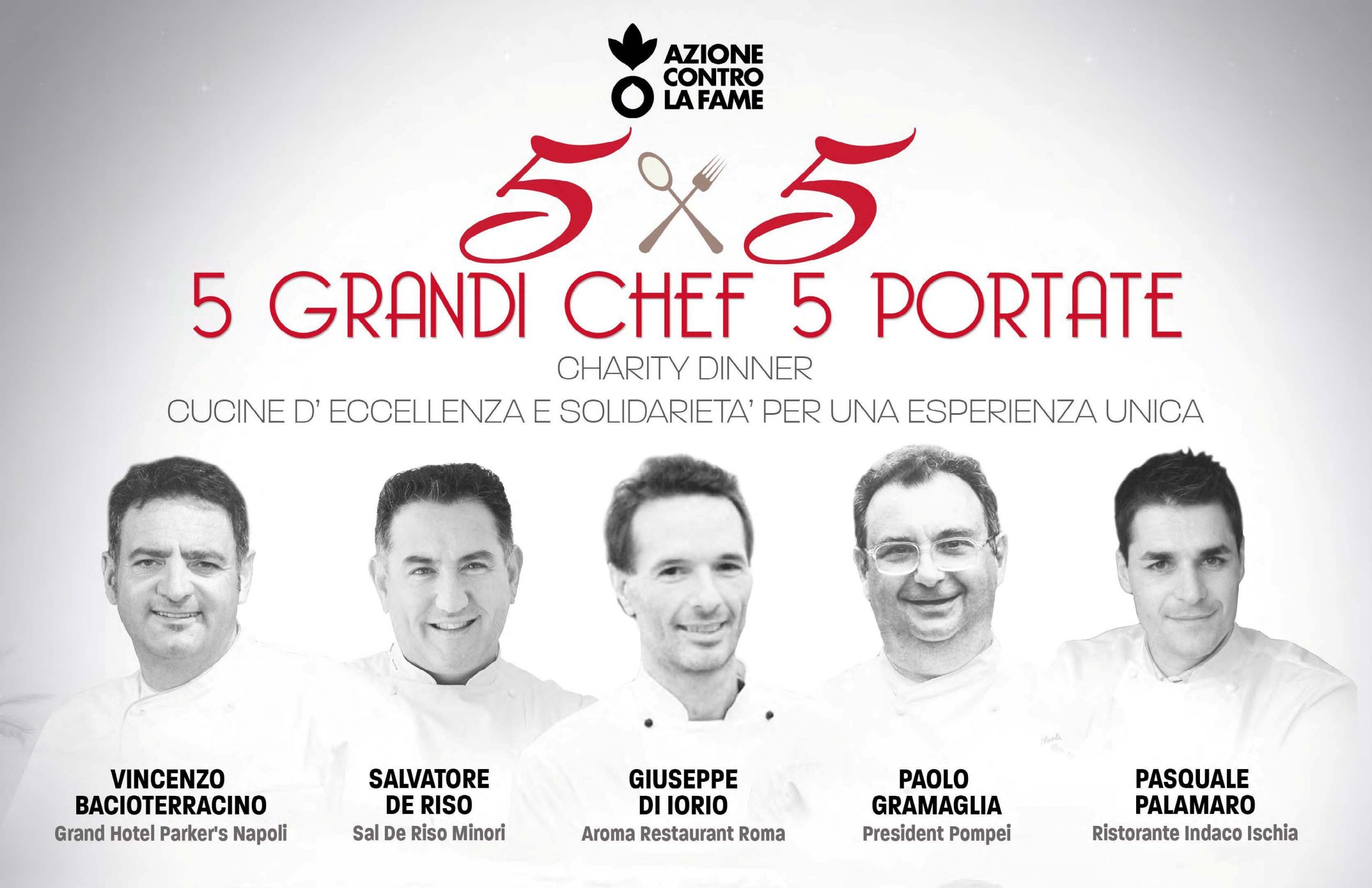 L’Organizzazione umanitaria internazionale Azione contro la Fame porta a Napoli una nuova importante iniziativa di solidarietà: “5 Chef per 5 Portate”. Dopo le serate a Milano e Roma, martedì 13 dicembre sarà Napoli con il Grand Hotel Parker’s ad ospitare la cena di beneficenza per la raccolta di fondi da devolvere alla lotta contro le cause e le conseguenze della fame. La cena solidale, in collaborazione con l’Associazione Professionale Cuochi Italiani, vedrà cinque affermati esponenti del mondo della gastronomia nazionale, alternarsi nelle cucine dello storico hotel al Corso Vittorio Emanuele per la preparazione di cinque pietanze. Questi i nomi: