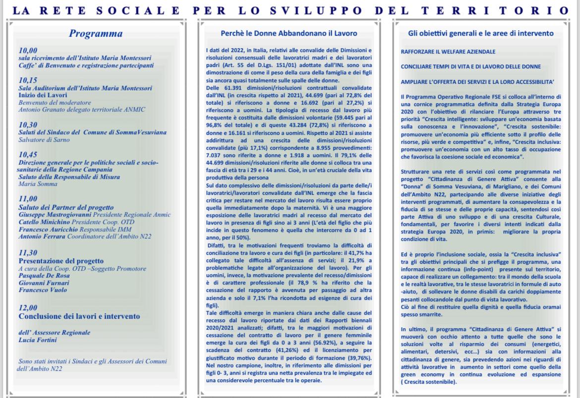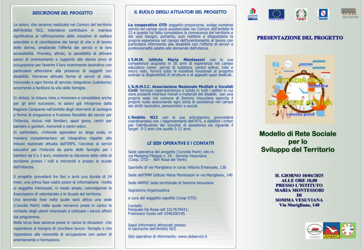 In questo contesto, il prossimo 10 aprile presso l’auditorium “Biagio Auricchio” dell’Istituto Maria Montessori, si terrà il convegno di presentazione del progetto “Modello di Rete Sociale per lo Sviluppo del Territorio”. Questo progetto ambisce a promuovere una “Crescita inclusiva”, favorendo la connessione tra le istituzioni scolastiche e le realtà familiari.