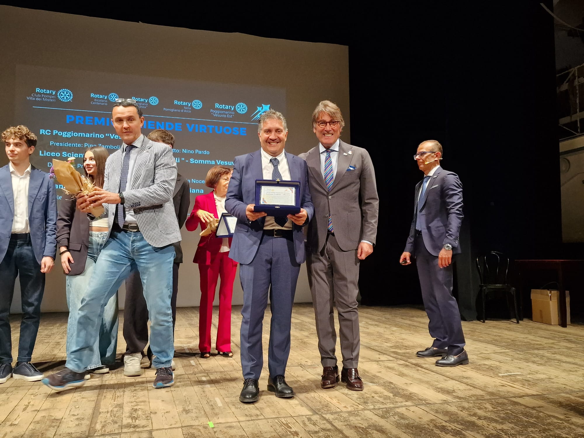 La cerimonia di premiazione si è svolta al Teatro Mattiello di Pompei, alla presenza di diversi club Rotary, tra cui Pompei Villa dei Misteri e Poggiomarino Vesuvio Est. All’evento hanno partecipato anche la Dirigente scolastica del Liceo Torricelli e alcune docenti dell’istituto, a conferma del sostegno della scuola alle attività che promuovono lo sviluppo di competenze trasversali tra gli studenti.