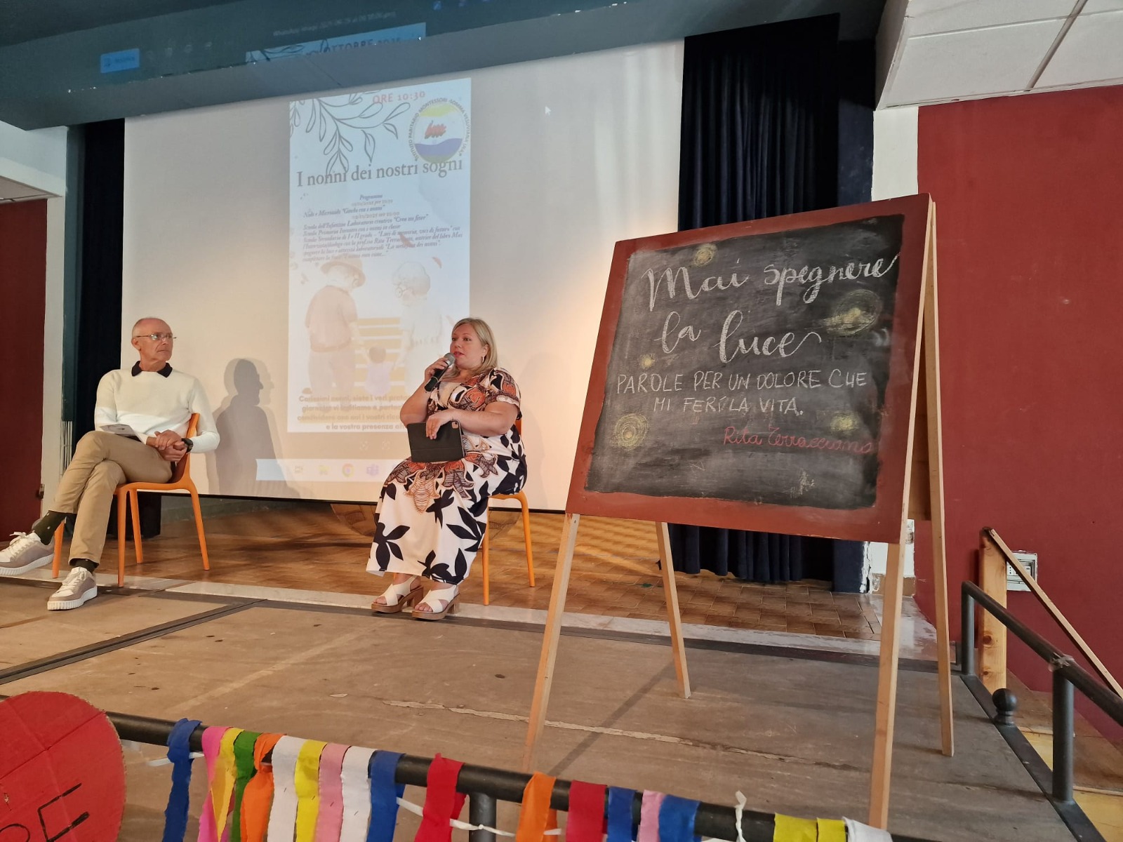 Il momento centrale della giornata è stato l’incontro degli studenti della Secondaria di I e II grado con la professoressa e giornalista Rita Terracciano, autrice del libro “Mai spegnere la luce”. Durante l’intervista-dialogo con gli studenti, la scrittrice ha affrontato temi profondi come la memoria, il patrimonio di esperienze che i nonni lasciano ai più giovani, e il loro ruolo come guide luminose nella vita dei nipoti.