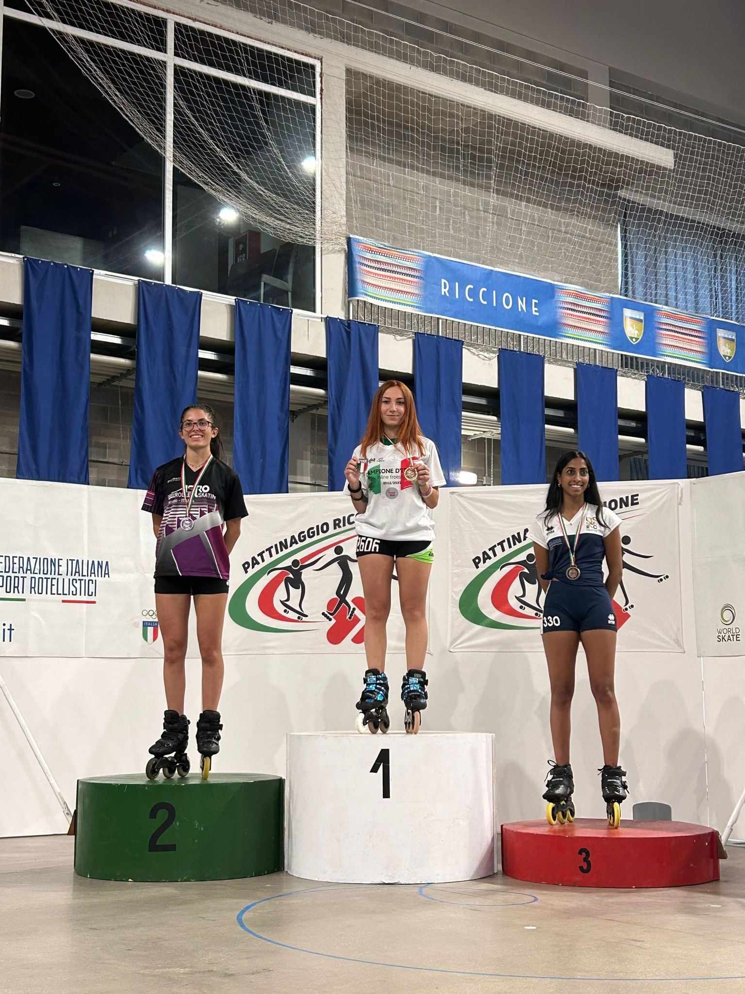 Si stanno svolgendo a Riccione i Campionati Italiani di Pattinaggio Freestyle 2023. Presenti tutte le societa’ italiane del freestyle con i loro migliori atleti. Dopo la trasferta parigina, l’atleta della Somma Skating School, Sveva Romano, riconquista il titolo di Campionessa italiana nella specialità dello speed slalom senior femminile, gia’ in suo possesso l’anno scorso!