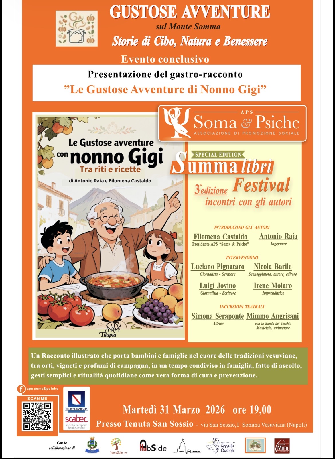 “Le gustose avventure con Nonno Gigi” è un racconto illustrato che porta bambini e famiglie nel cuore delle tradizioni vesuviane, tra orti, vigneti e profumi di campagna. Attraverso le stagioni, Nonno Gigi guida i nipoti Fabio e Laura – con il cagnolino Ciciniello – tra leggende, riti antichi e mestieri, trasformando i gesti quotidiani in insegnamenti di vita. Al centro ci sono la memoria delle comunità vesuviane, il rispetto della terra, la trasmissione dei saperi e dei valori che rischiano di perdersi.