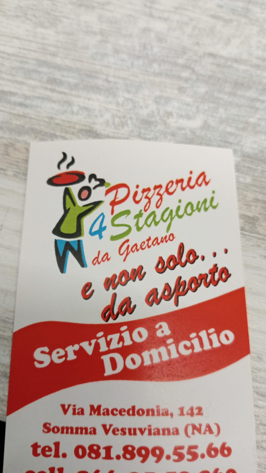 La Pizzeria “4 Stagioni” nasce dal progetto di Gaetano Nocerino, il quale, dopo aver maturato tanti anni di esperienza anche all’estero nell’ambito dell’arte della pizza napoletana, ha deciso di realizzare il suo sogno aprendo la sua attività in proprio. Con grande dedizione e determinazione Gaetano è riuscito ad inaugurare la sua pizzeria, investendo nel territorio di Somma. Oltre alle pizze di vari gusti cotte nel forno a legna secondo la tradizione napoletana, Gaetano e il suo staff deliziano i clienti della Pizzeria “4 Stagioni” con tanti sfiziosi prodotti di friggitoria e rosticceria: dai crocché e agli arancini, alle parigine e panini rustici. La pizzeria offre anche servizio di asporto e di consegna a domicilio.