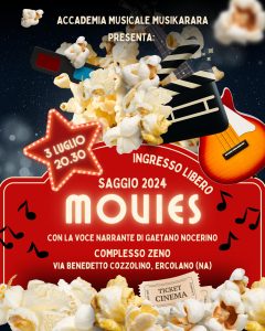 Somma Vesuviana. Mercoledì 3 Luglio, alle ore 20.30, nella splendida cornice dell’arena del Complesso Zeno di Ercolano, si terrà “Movies”, lo spettacolo di fine anno organizzato dall’Accademia Musikarara del M. Rosanna Cimmino.