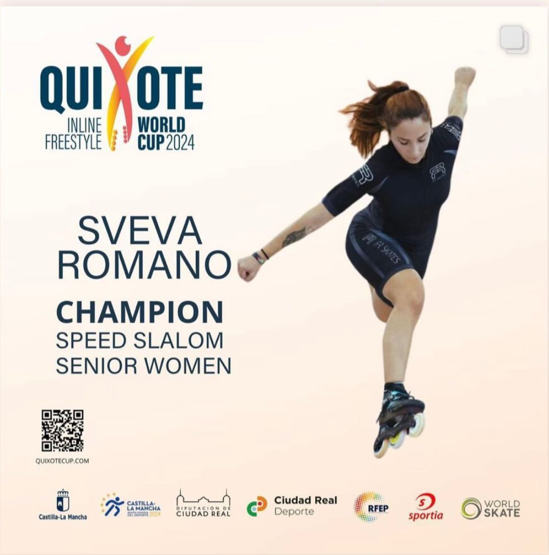 Dopo aver trionfato prima a Senigallia a luglio scorso e la scorsa settimana alla Titano Battle, in San Marino, altra gara del circuito Worldskate, Sveva Romano vince alla grande anche in Spagna aggiudicandosi un’altra medaglia d’oro nella specialita’ dello Speed Slalom Senior Women, prima classificata nelle qualifiche e prima nei Ko!!! Questi successi le hanno consentito di raggiungere la vetta del ranking mondiale di specialità!