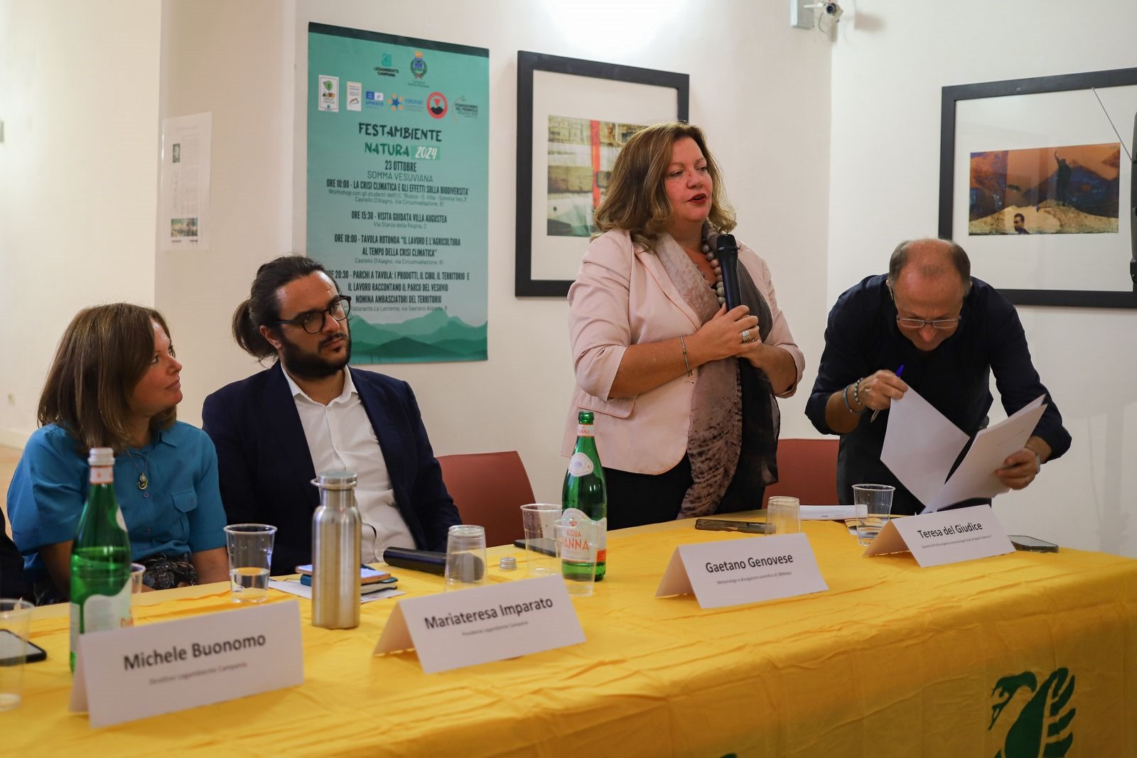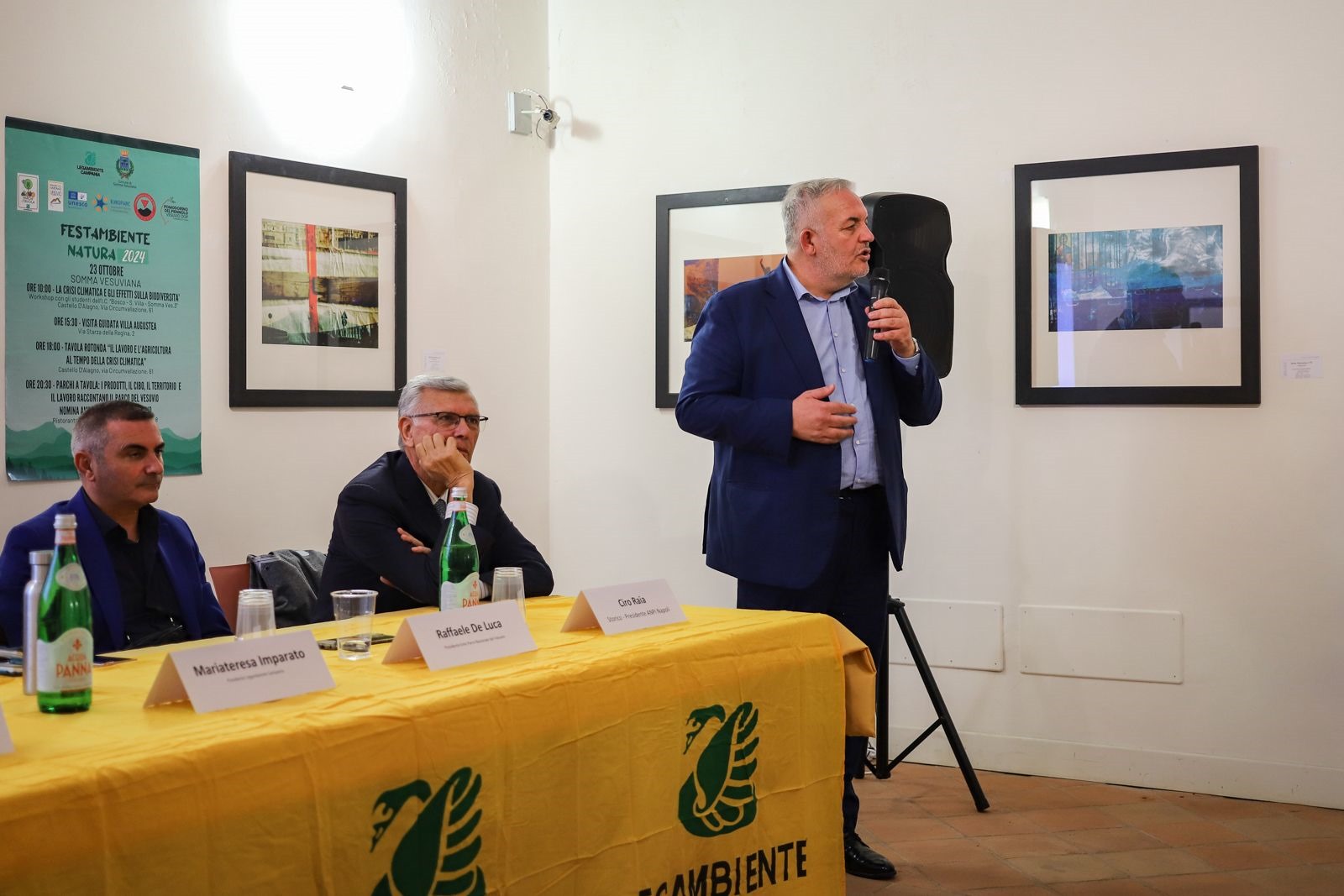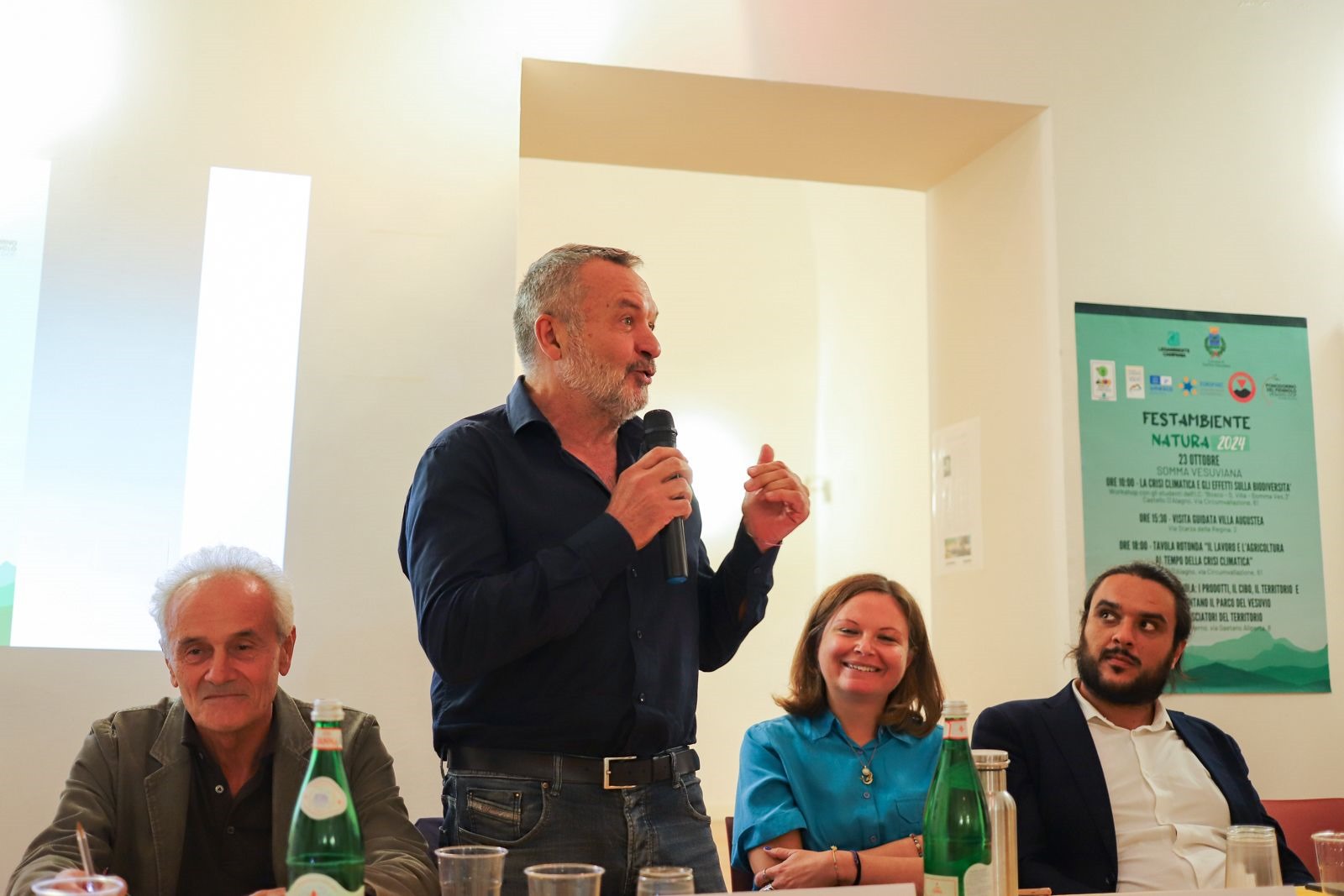Nel pomeriggio, si è tenuta una tavola rotonda dal titolo “Il lavoro e l’agricoltura al tempo della crisi climatica”, moderata da Giovanni Romano, Presidente di Legambiente Somma Vesuviana. Tra i relatori il Sindaco di Somma Vesuviana, Salvatore Di Sarno, la Presidente di Legambiente Campania, Mariateresa Imparato, il Presidente del Parco Nazionale del Vesuvio, Raffaele de Luca, il Comandante Reparto Carabinieri Forestali Parco nazionale del Vesuvio, Angelo Marciano. Sono intervenuti alla conferenza anche Gaetano Genovese, Meteorologo 3B Meteo, Teresa Del Giudice, Docente Politica Agraria Università “Federico II” di Napoli, Anselmo Botte, Presidente Auser Campania, Michele Buonomo, Direttivo Legambiente Campania, Pasquale Raia, Legambiente Mimmo Beneventano, Valerio Calabrese, Direttore Museo Vivente della Dieta Mediterranea e Ciro Raia, Storico.