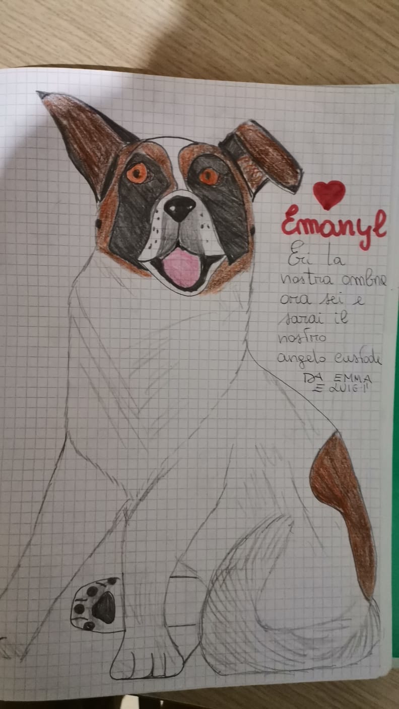 La morte del cagnolino ha lasciato un vuoto incolmabile nei cuori di tutti coloro che lo hanno amato e visto crescere nel corso di questi otto anni. Il suo corpo senza vita è stato sotterrato nel fondo agricolo della signora che risultava sua proprietaria dopo l’inserimento del microchip e sul posto i bambini e i ragazzi hanno costruito una piccola tomba per portare fiori e pregare. Due bimbi residenti nel cortile hanno realizzato anche un bellissimo disegno in ricordo del loro amico a quattro zampe con una splendida e commovente dedica: “Eri la nostra ombra, ora sei e sarai il nostro angelo custode”.