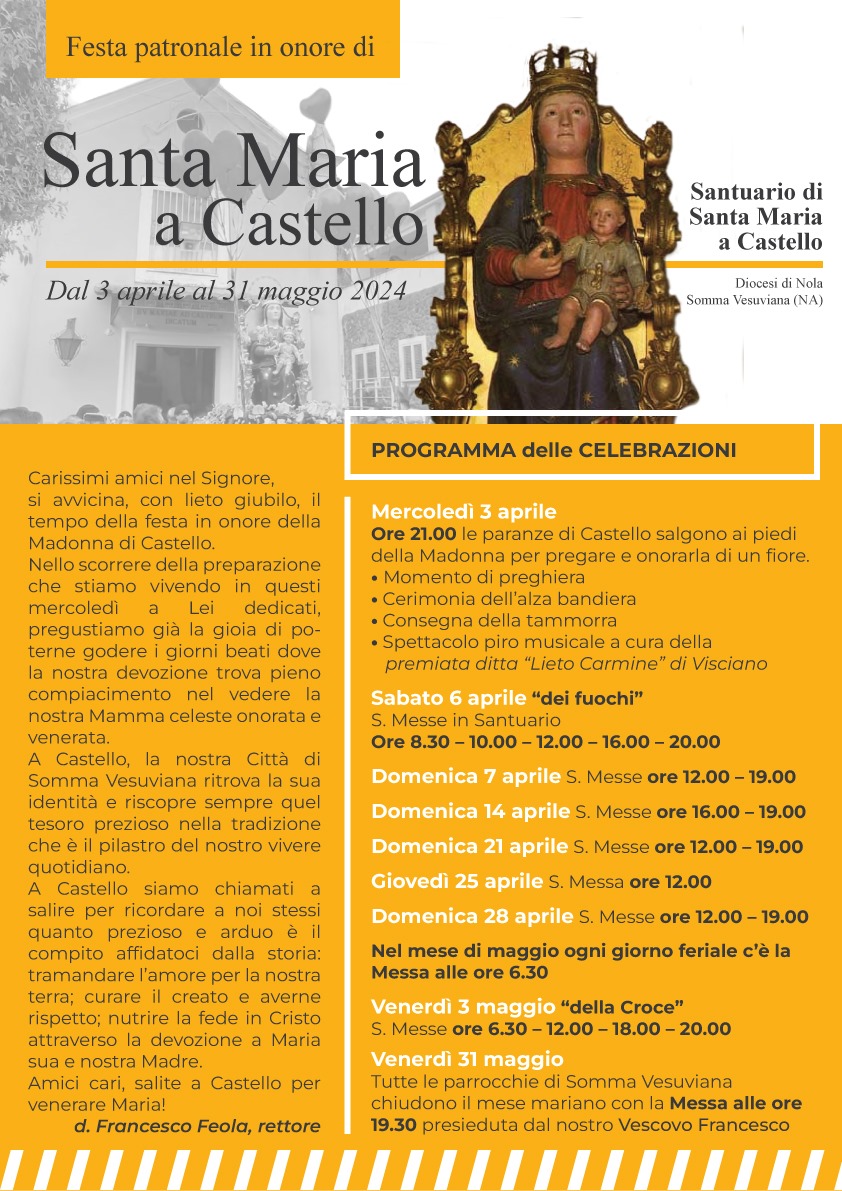 si avvicina, con lieto giubilo, il tempo della festa in onore della Madonna di Castello.