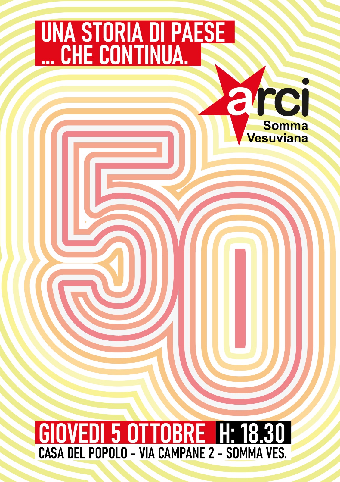 Siamo lieti di annunciarvi che Arci Somma quest’anno festeggia i suoi primi 50 anni di attività. Tante le iniziative che in questi decenni ci hanno visti impegnati: dagli eventi culturali realizzati per promuovere il nostro territorio, al sostegno per le popolazioni di Amatrice e dell’Emilia, le raccolte di beni di prima necessità da destinare ai meno fortunati durante la pandemia, l’ospitalità dei nostri fratelli ucraini che, ancora una volta, ha messo in luce l’importanza dell’integrazione.