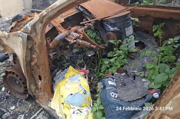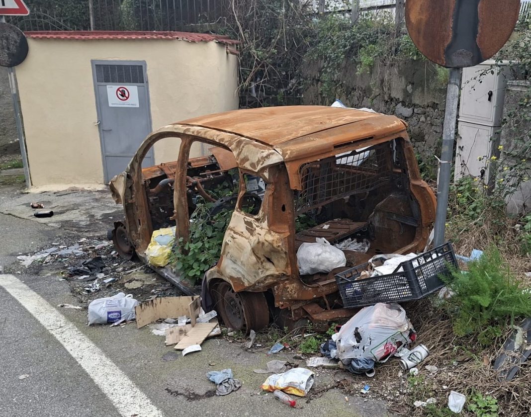Da allora, la carcassa del veicolo è rimasta lì. Da auto incendiata a punto di accumulo rifiuti