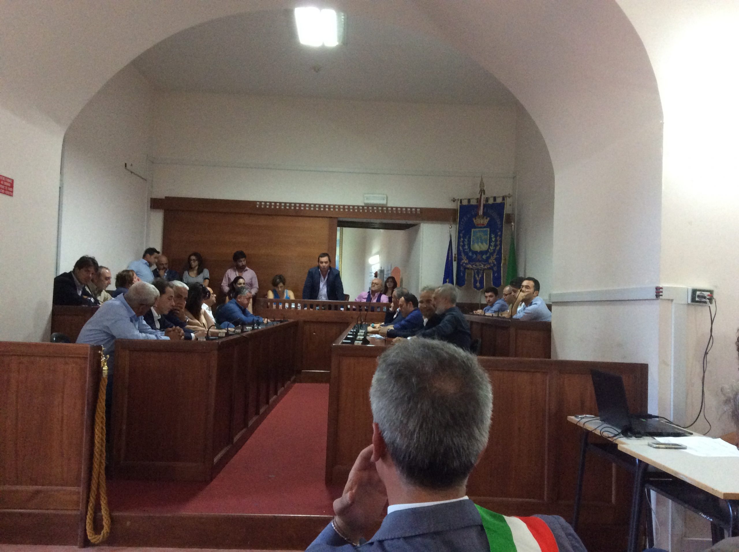Erano tutti lì per testimoniare solidarietà, affetto e vicinanza al sindaco Piccolo, dopo l’episodio che ha visto il primo cittadino ferito con tre coltellate e il suo aggressore in carcere. Un consiglio comunale convocato in tutta fretta per distinguerlo dalla seduta prevista per questa mattina e un solo tema all’ordine del giorno: l’aggressione a Piccolo e il conseguente sostegno unanime dell’assise. Mancava la città, però. Pochi cittadini, pochissimi. Molti, moltissimi, in meno di quelli che su facebook o con messaggi e telefonate hanno testimoniato nelle ore precedenti il loro affetto e sostegno a Piccolo. C’erano però gli assessori, tutti i consiglieri, di maggioranza e opposizione, e ciascuno ha detto la sua, c’erano i sindaci delle città limitrofe: Sant’Anastasia, Mariglianella, Ottaviano, Brusciano, c’era il consigliere regionale Carmine Mocerino e anche Francesco Iovino, consigliere della Città Metropolitana e vicesindaco di Saviano. Non si sono viste le associazioni, l’unico partito politico che ha pensato bene di mandare un rappresentante in aula, pur non avendo consiglieri, è la Destra, con l’ingegnere Francesco Di Sarno. Insomma, poteva essere un’occasione per far passare un sentimento di forza, di comunità. Di certo però non è stata una passerella inutile, viste le proposte arrivate da alcuni interventi. Il presidente del consiglio Pasquale Di Mauro ha invitato tutti a stringersi intorno non solo al sindaco, ma all’uomo e a ciò che per le istituzioni rappresenta. «Un sentimento granitico di solidarietà – ha detto – al nostro primo cittadino, ma chiediamo che l’appello che parte da qui oggi sia ascoltato da tutte le istituzioni sovra comunali, che non ci lascino soli». Il consigliere regionale Mocerino ha sottolineato, circa l’aggressione, che si è davanti al gesto di un folle, plaudendo al tempestivo intervento delle forze dell’ordine. «La risposta migliore – ha poi aggiunto – non può essere che andare avanti spediti nel governo della città e nella risoluzione dei problemi». Il sindaco di Brusciano è intervenuto anche nel ruolo di rappresentante di Anci Campania. «Mia intenzione – ha detto Giosy Romano – è convocare come Anci Campania, qui a Somma Vesuviana, un tavolo di riflessione con la partecipazione di esponenti del Governo centrale». Il sindaco di Mariglianella, Felice Di Maiolo ha aggiunto: «Il sindaco Piccolo merita rispetto per ciò che è riuscito a fare in questi mesi, anche sul fronte delle politiche sociali per le quali stiamo lavorando insieme come ambito». «Oggi ci sentiamo tutti di Somma Vesuviana – ha detto il sindaco di Sant’Anastasia, Lello Abete – quando ho appreso di quanto accaduto al sindaco Piccolo ho avuto come un senso di resa. Non è possibile essere additati come colpevoli di quanto accade, della crisi, di ogni disagio: noi ci mettiamo l’anima e siamo i soli, come sindaci, a parte forse soltanto i parroci, ad avere la misura di quanto accade sui nostri territori. Siamo soli, perché io faccio la differenza tra un sindaco e un politico e la crisi non è certamente figlia nostra». Un’altra proposta, quella di inviare un documento comune al Prefetto, è arrivata dal sindaco di Ottaviano, Luca Capasso. «Gesti simili vanno condannati non solo senza “se” e senza “ma”. Non devono esistere, “se” e “però”. Oggi i sindaci sono il front office della popolazione, siamo pubblici ufficiali e vedere ieri un collega ferito è stato bruttissimo, si pensa davvero di gettare via la fascia in quei casi. Ma poi ci si arrabbia e ci si dice che dobbiamo lottare, bisogna far capire ai cittadini che facciamo solo e soltanto i loro interessi». Il sindaco Piccolo, braccio al collo ma sereno, ha ringraziato i presenti con poche parole.