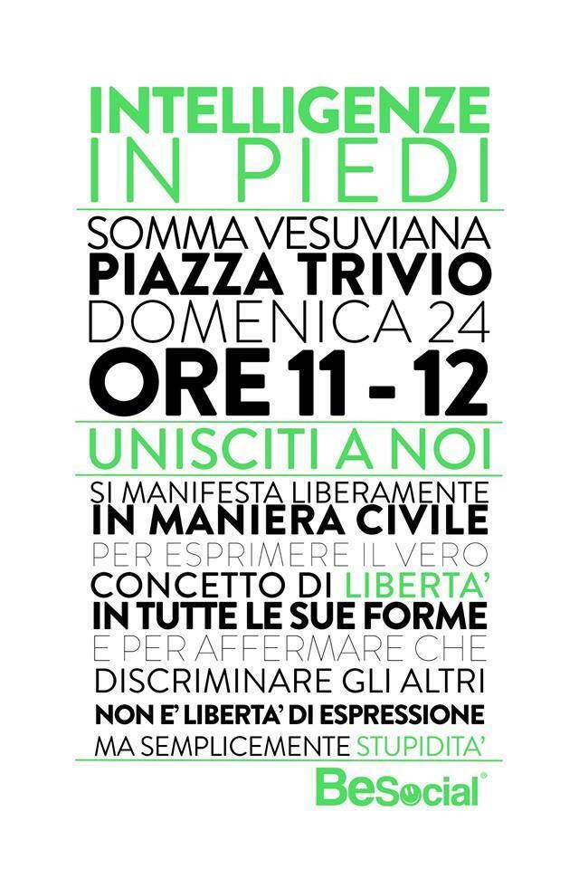Ad annunciarlo è Peppe Maiello, componente della Commissione Pari Opportunità di Somma Vesuviana: domani ci sarà una contromanifestazione per protestare contro quella organizzata dalle Sentinelle In Piedi, rete nazionale costituitasi anche nel vesuviano con l’obiettivo di dire no al ddl Cirinnà, ai matrimoni e alle adozioni gay.