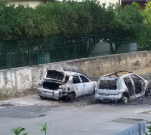 E’ stata una notte di paura quella appena trascorsa all’ultimo tratto del Corso Italia, all’incrocio di via Traversa Garibaldi, dove due automobili in sosta sono andate in fiamme. Intorno alle 2, 30 i residenti raccontano di aver sentito uno strano rumore e poi un paio di boati, simili a scoppi. Fatto sta che chi si è affacciato ha potuto vedere le fiamme che, in pochi attimi, hanno avvolto due auto in sosta sullo spazio antistante l”alveo all’inizio dell’incrocio di via Traversa Garibaldi. In quel tratto, durante uno degli ultimi temporali, cadde il palo della pubblica illuminazione che ad oggi non è stato ancora ripristinato e, quindi, l’incrocio è completamente buio. Una delle due auto appartiene a una famiglia del posto che solitamente la parcheggia in quello spazio, praticamente quasi sotto casa. Sul posto sono intervenuti i vigili del fuoco e i carabinieri della locale stazione al comando del Maresciallo Raimondo Semprevivo, che avranno il compito di indagare per capire se e perchè l’incendio è stato di origine doloso.