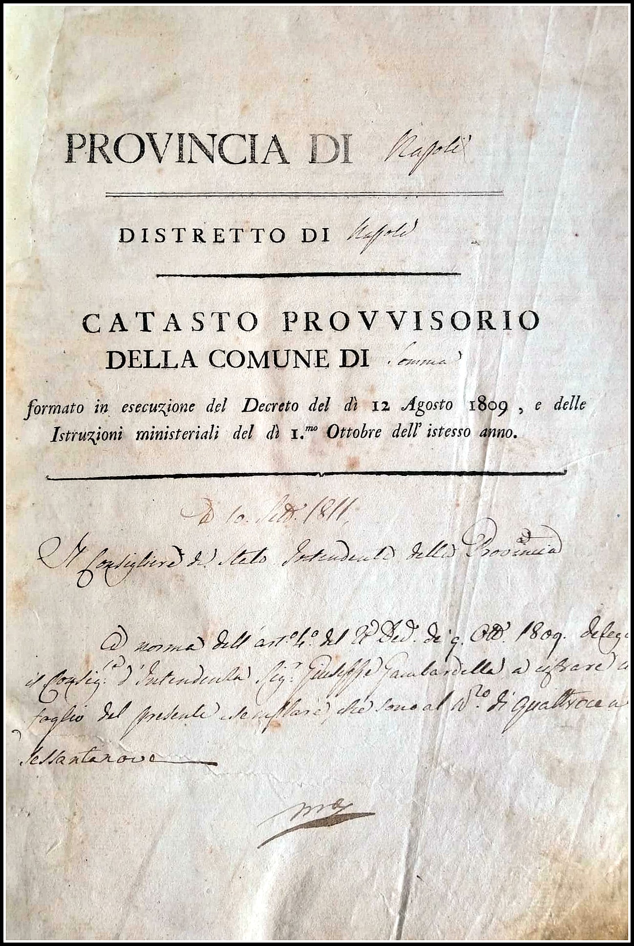 - Epoca in cui è stato compito il Catasto Provvisorio: 1811, 1° agosto