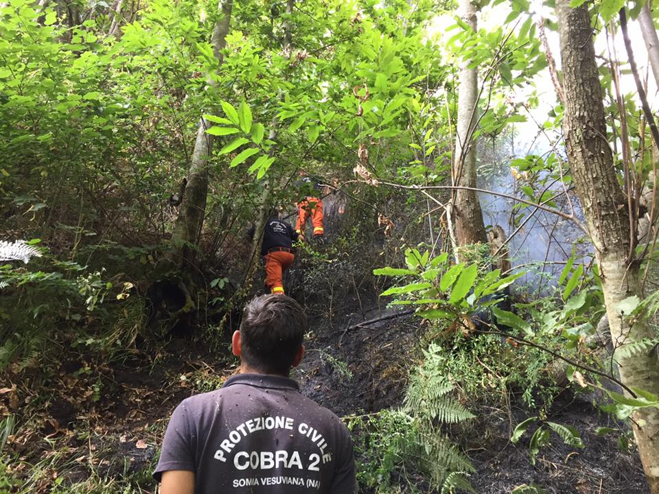 In questi ultimi giorni, mentre il Vesuvio bruciava per mano criminale, sul web e sui social si è visto davvero di tutto, dalle bufale alle assurdità fino ai selfie con il fumo e il fuoco alle spalle e alle passerelle di politici. Gli stessi che escono allo “scoperto” solo in casi di calamità e tragedie. C’è chi ha puntato il dito contro tutti e tutto, chi ha tentato di sdrammatizzare, chi ha scritto poesie(alcune veramente belle), chi si è ricordato che un nostro poeta vesuviano ha scritto Muntagna e stu cor e chi ha postato foto di Messina facendole passare per Terzigno. Di tutto e di pù, dunque. Ma lassù, nelle zone impervie del Parco Vesuvio, tra le fiamme e il fumo, c’erano come sempre, insieme ai vigili del fuoco, I giovani della protezione Civile Cobra 2 , poco meno di trent’anni, qualcuno appena ventenne, armati solo di pale e di coraggio. Da Ottaviano a Somma,i giovani volontari della protezione civile hanno lavorato incessantemente senza mai fermarsi nell’immenso bosco e sottobosco del Parco in fiamme. In attesa che arrivassero i canadair, sono arrivati fin dove potevano via terra e hanno cercato di contenere i danni. Qualcun potrebbe dire : è vero, ma è il loro lavoro e sono stati addestrati per quello. Non è proprio così, i volontari restano tali e lo fanno in particolare per spirito di servizio. Il compenso è un minimo rimborso spese. Questa mattina li ho incontrati al bar, assonnati. Esausti. Non dormono da cinque notti e, insieme ai colleghi della croce rossa di Somma Vesuviana e agli amici della protezione civile di Pronto Intervento, hanno raccontano dei momenti di inferno a cui hanno assistito. Ma anche dei gesti di solidarietà della gente che ha portato loro acqua e aiuti. A un certo punto si sono trovati accanto cittadini comuni, provenienti da Napoli e dal vesuviano, pronti a sostenerli. Mentre parlavano il loro sguardo ancora preoccupato era rivolto alla montagna di Somma , alla località Maresca dove in questo momento stanno ricominciando a gettare terra sul fuoco.
