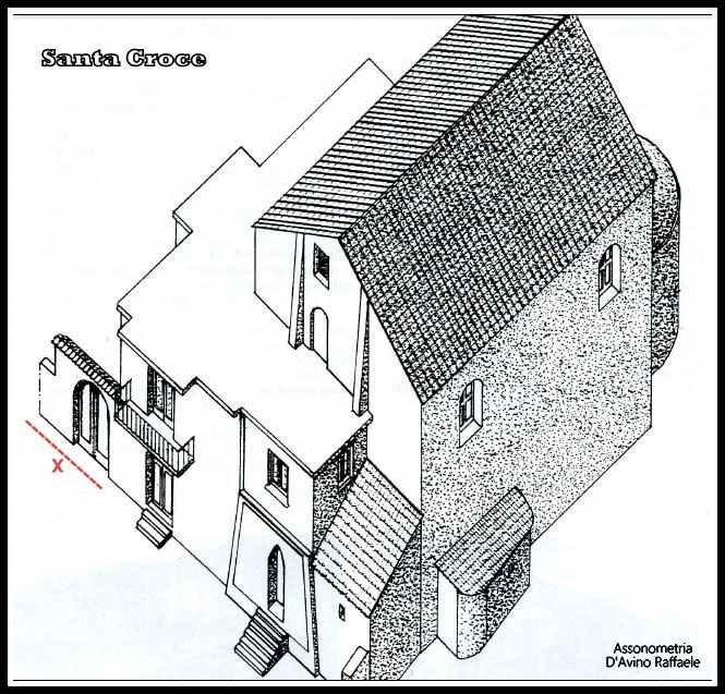 L’antica chiesa di Santa Croce, ridotta ormai ad un desolato rudere, sorge nell’omonimo borgo ubicato a nord – est del paese. Di questa chiesa non si conosce l’epoca precisa della sua fondazione, ma sappiamo che esisteva già nel 1375. Proprio alle spalle esisteva nel 1799 un giardino di circa un moggio e un quarto, appartenente alla parrocchia e affittato a tale Scipione di Amato, come si evince dalla mappa catastale della Terra di Somma del cartografo Luigi Marchese di quell’epoca. Oltretutto, sul muro che va sulla strada e circonda la chiesa vi sono inglobate tegole e frammenti di dolia di epoca romana, come afferma l’appassionato di archeologia Gerardo Capasso.