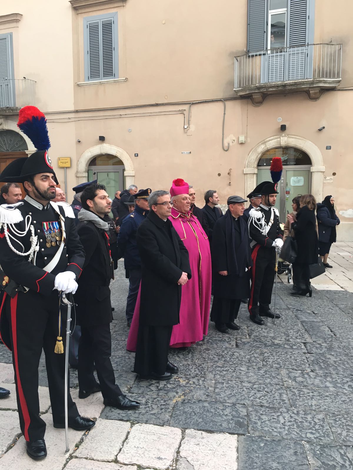 Ad accompagnarlo nell’inizio del suo mandato c’era il cardinale Salvatore De Giorgi, ex arcivescovo di Foggia che ha presieduto le ultime feste patronali dell’agosto 2016 quando c’era ancora la sede vacante in attesa del nuovo pastore. Assieme al porporato, hanno celebrato la giornata di festa per la chiesa locale il vescovo emerito Francesco Zerrillo, l’arcivescovo emerito di Foggia-Bovino Francesco Pio Tamburrino e i due pastori di Nola, la diocesi da dove proviene monsignor Giuliano: l’attuale Francesco Marino e il recentissimo predecessore Beniamino Depalma.