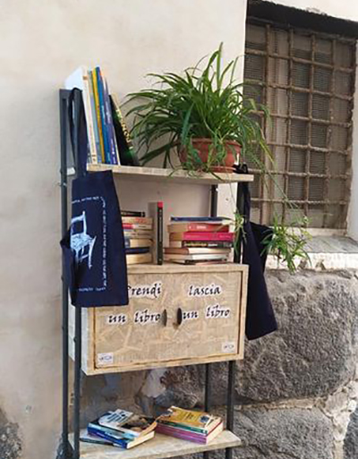 “Da oggi, giorno del nostro quarto anniversario, a Via Botteghe a Somma Vesuviana troverete un mobiletto dove poter prendere gratuitamente un libro e si spera dove potrete lasciare un libro da condividere!