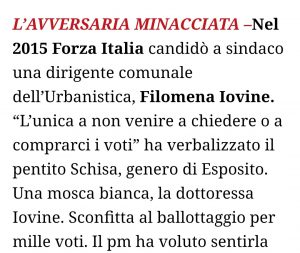 Di Filomena Iovine politico, consigliere comunale di minoranza a Marigliano, preferisco solo ricordare una frase citata anche da grandi testate nazionali, una frase estrapolata da un’ordinanza rimbalzata di recente sui media. La trovate in foto, a margine.
