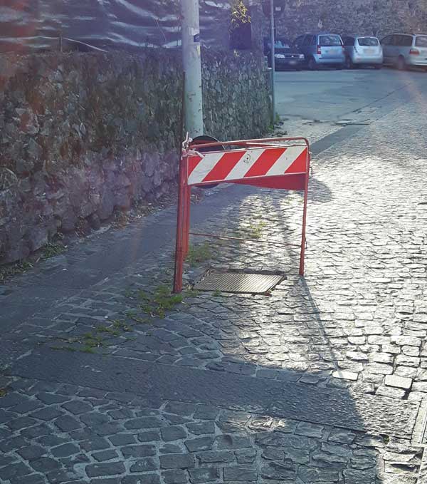 Il simbolo di Somma Vesuviana è tutto in questa foto in via Gino Auriemma. Simbolo di decadenza e oblio. Di rassegnazione e degrado. Da due mesi questa transenna che circonda un tombino, probabilmente ballerino, si trova a cinque metri dagli uffici comunali ed altrettanti dal comando dei Vigili Urbani. Ed ovviamente nessuno si pone il problema. Chissà quante volte sindaco, assessori, consiglieri, tecnici, l’hanno visto e rivisto ma senza domandarsi: forse è il caso di riparare il tombino e togliere questa transenna che ostacola il traffico. Macchè le miserie di questo paese sono ormai arrivate ad un punto di non ritorno. Melanconicamente si avvia verso il tramonto e la classe politica appare inerte di fronte ad un destino ripiegato su stesso.