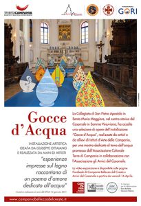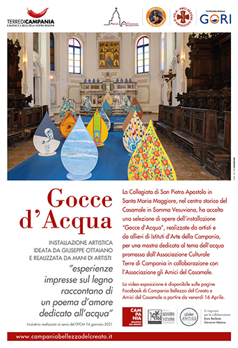 Dopo il successo dei video realizzati presso il Duomo di San Michele Arcangelo in Casertavecchia e Villa Campolieto di Ercolano, l’Associazione Culturale Terre di Campania rinnova il suo impegno nella valorizzazione dei luoghi d’arte della regione Campania con una ulteriore tappa del percorso espositivo virtuale dedicato all’installazione artistica “Gocce d’Acqua”, ideata da Giuseppe Ottaiano nell’ambito del progetto “Campania Bellezza del Creato”. Questa volta, ad ospitare una selezione delle oltre 180 sagome di gocce, dipinte da 51 artisti e da oltre 100 allievi di 7 istituti artistici campani, è stata la Collegiata di San Pietro Apostolo in Santa Maria maggiore, uno dei luoghi simbolo del centro storico del Casamale in Somma Vesuviana. L’edificio religioso, risalente al XII secolo e costruito su una chiesetta già esistente, in onore di San Giacomo e di Santa Maria della Sanità, fu il centro attorno al quale si sviluppò il borgo medievale del Casamale, successivamente delimitato dalle imponenti mura aragonesi. Il borgo si conserva ancora oggi integro nonostante le sovrapposizioni strutturali ed estetiche dei secoli successivi, rappresentando il cuore vivo di Somma Vesuviana. Il borgo è legato inoltre alla tradizionale e suggestiva “Festa delle Lucerne”, che ha luogo ogni quattro anni. Il video realizzato presso la Collegiata aggiunge, dunque, un altro importante tassello al percorso di promozione dei luoghi d’eccellenza del nostro territorio regionale che sta compiendo l’installazione artistica collettiva ideata da Giuseppe Ottaiano, in attesa di essere esposta dal vivo non appena le condizioni sanitarie lo consentiranno. Un’installazione artistica, lo ricordiamo, pensata per promuovere la salvaguardia e la conoscenza dell’immenso e prezioso patrimonio idrico della Campania.