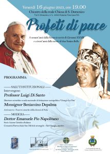 Nell’arco delle attività dei gruppi di Azione Cattolica delle parrocchie di Santa Maria di Costantinopoli e San Michele – San Giorgio in Somma Vesuviana, si programma il convegno “Profeti di Pace”, per i sessant’anni dalla enciclica PACEM IN TERRIS di papa Giovanni XXIII e i trent’anni dalla morte di don Tonino Bello, due uomini di pace; in un momento storico in cui la pace va non solo chiesta ma urlata a gran voce.