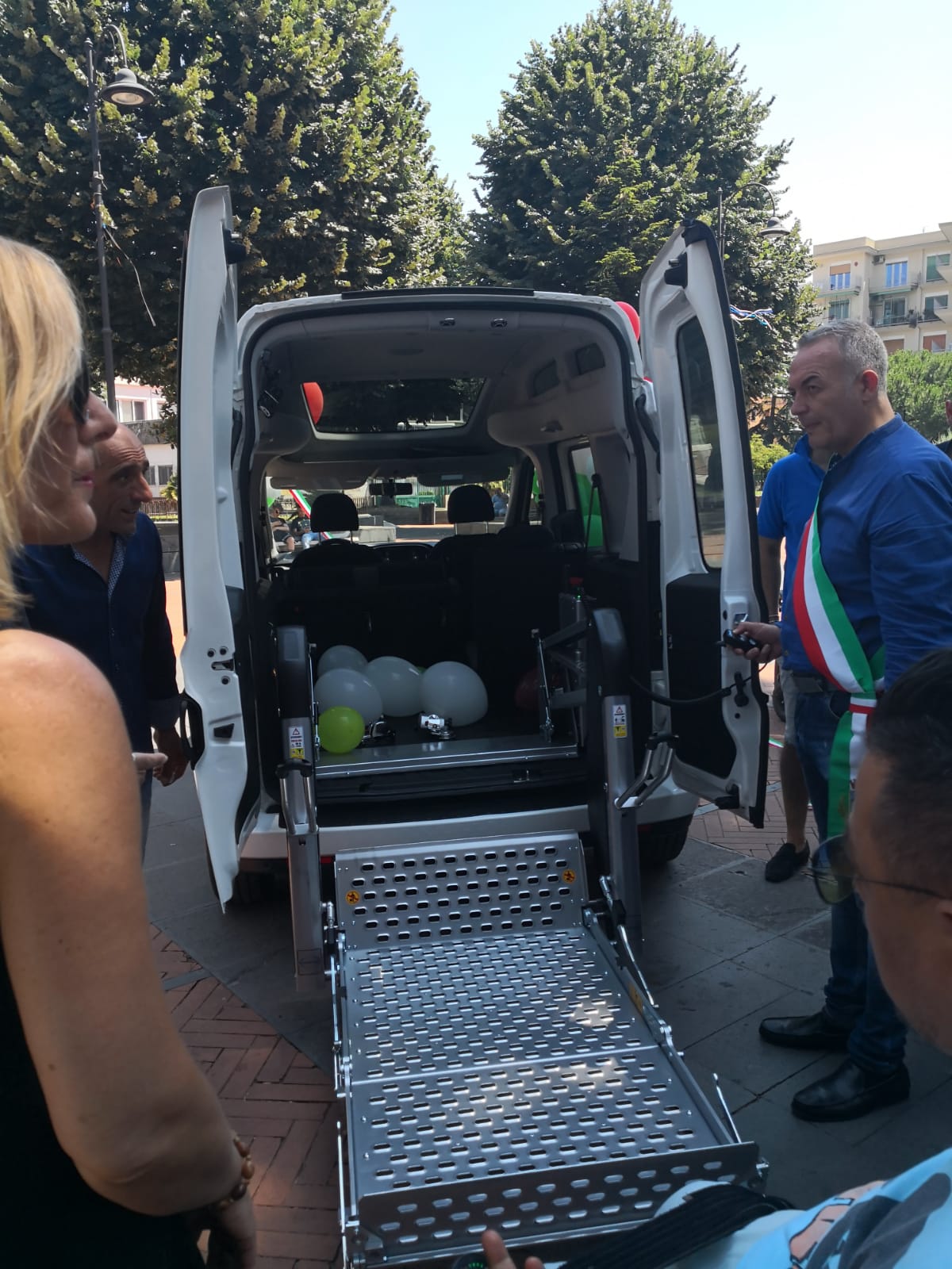 Presentato questa mattina in piazza Vittorio Emanuele III il progetto «Noi con voi», promosso dal sindaco Salvatore Di Sarno e dall’assessore alle politiche sociali, il vicesindaco Maria Vittoria Di Palma, in collaborazione con la società Gms srl: alla presenza degli imprenditori che hanno contribuito affinché fosse possibile acquistare il nuovo automezzo destinato alle attività sociali dell’ente, è stato consegnato il veicolo costato circa 30mila euro. «A noi non è costato nulla – precisa il sindaco – ci è stato proposto questo progetto dalla società Gms e abbiamo deciso di fare appello a tutti gli imprenditori, trovando un riscontro oggettivamente importante. Ora noleggeremo anche un’auto».