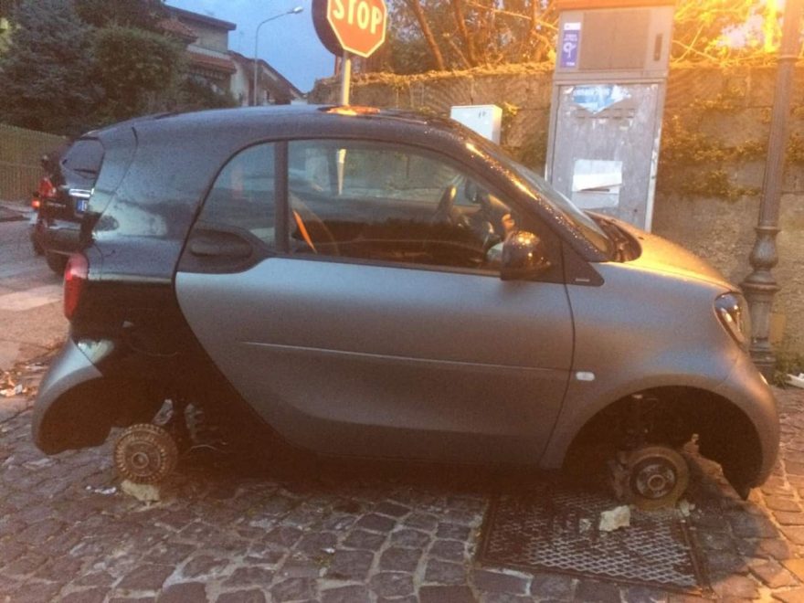 Era accaduto pochi giorni fa in pieno centro, a Via Aldo Moro. L’episodio si è ripetuto, questa volta, nel borgo antico Casamale, in via Piccioli. Una seconda automobile, parcheggiata sulla strada, è stata ritrovata priva degli pneumatici. Un furto che fa nascere sospetti e che sembra avere un medesimo mandante: infatti, le automobili implicate sono della stessa casa automobilistica, la Smart Gmbh. Ciò lascia indubbiamente presagire che si tratti di una rapina mirata e che magari dietro ci sia una banda “specializzata”. Tutte ipotesi che i carabinieri della locale stazione sicuramente andranno a verificare.