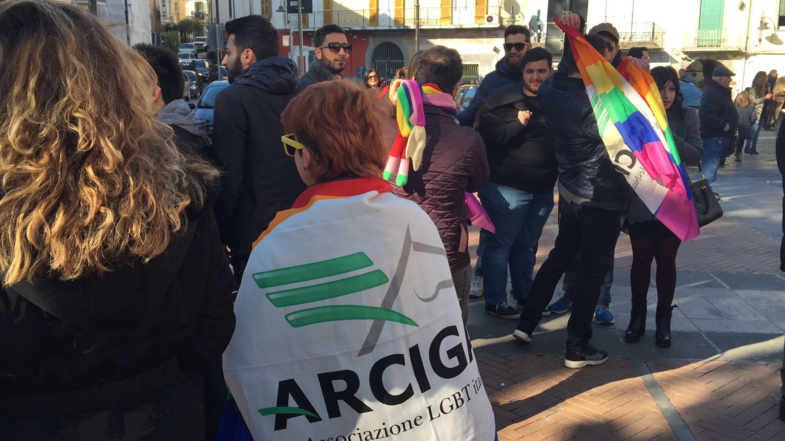 Bambolotti in braccio per dire sì alle adozioni gay, balli e flash mob, musica e cartelli: «Voi in piedi, noi in tutte le posizioni». Ma il referente vesuviano delle Sentinelle dice: «Manifestazione solo rimandata».