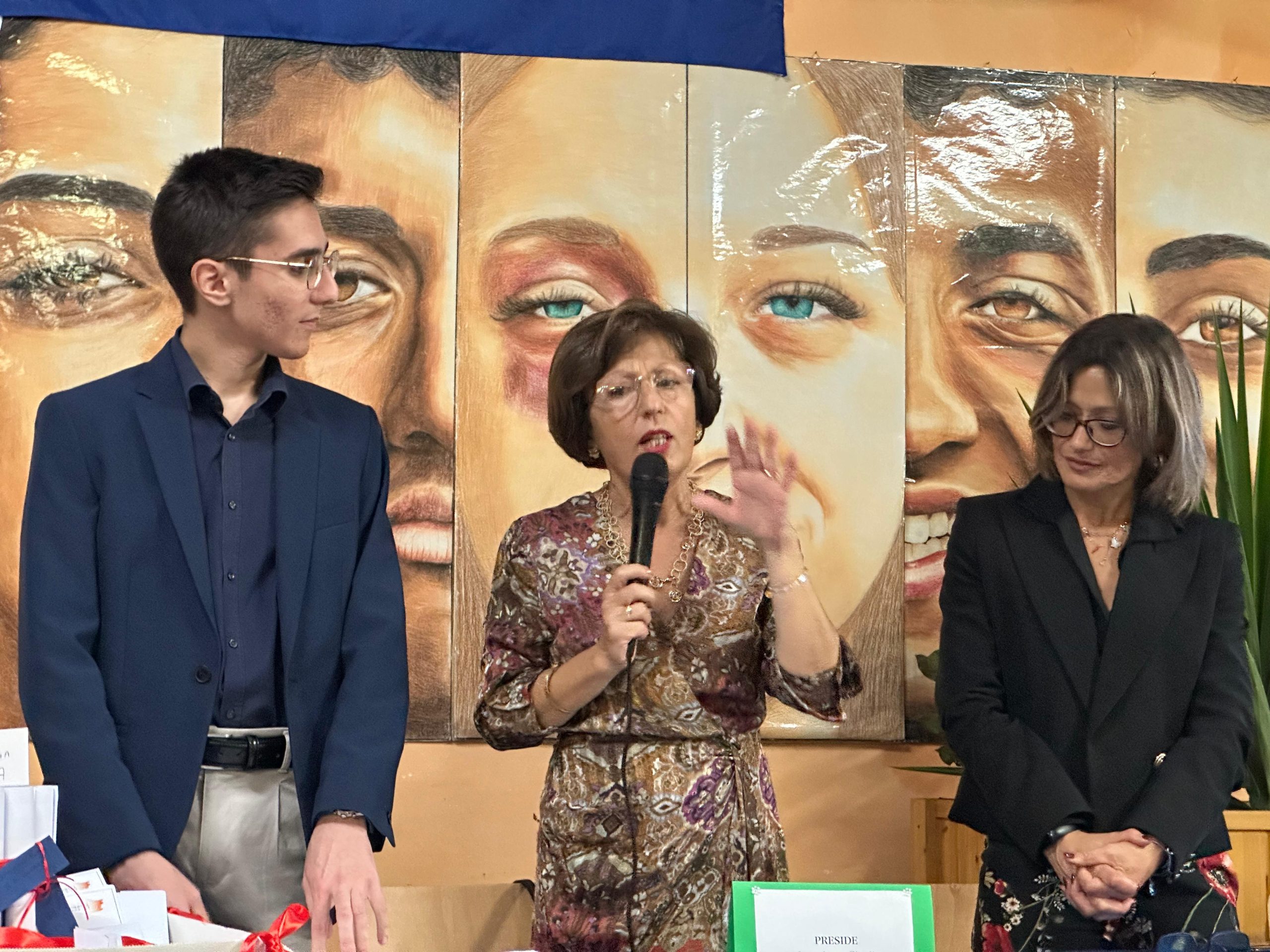 Presenti anche Teresa Esposito per il Premio Rotaract, Cinzia Castaldo Eva pro-Eva per il Premio concorso per sensibilizzare i ragazzi contro la violenza sulle donne, Tancredi Cimmino Coordinatore Telethon. Quest’ultimo è intervenuto per la vittoria di un allievo del Torricelli delle selezioni per uno Stage al Tigem di Pozzuoli. Durante la serata c’è stato anche un collegamento con l’ex alunno Giovanni D’ Antonio che in questo momento si trova ad Harvard.