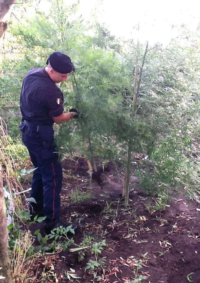 Un fondo agricolo nelle campagne di somma vesuviana e, tra frutta e ortaggi, una settantina di piante di cannabis indica dell’altezza media di circa 2,5 metri.