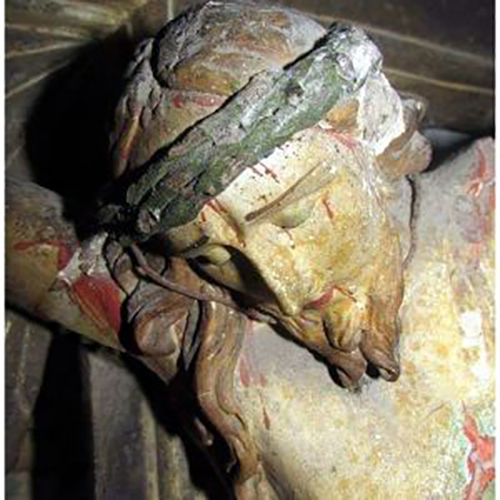Dall’analisi dei materiali – spiega l’esimio prof. Antonio Bove di Ponticelli – risulta che questo capolavoro artistico, in origine, era integralmente indorato: fin tanto che va classificato come opera del genere delle croci astili, potenzialmente da essere collocato sull’ altare maggiore. Uno stupendo prodotto, modellato in legno, la cui drammaticità spinge il devoto non solo a sollevare un forte sentimento di commozione, ma anche ad immedesimarsi nel dolore di Cristo in Croce. Si tratta, dicevamo, di una figura rigogliosamente barocca, umanizzata, contorta, sofferente con i segni tangibili di un martirio, che sembra, in un certo senso, ancora sopportato dalla vittima immolata: una vera testimonianza di fede da contemplare.