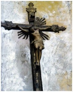 Nel XVII secolo, comunque, ogni altare presentava il suo crocifisso ligneo, in conformità sia alle disposizioni papali di Leone X (1475 – 1521), sia in ossequio al profondo messaggio francescano. Il cardinale Gabriele Paleotti (1522 – 1597), in particolare, nella sua opera, edita nel 1582, dal titolo Discorso intorno alle immagini sacre e profane, chiariva che la funzione coinvolgente dell’arte doveva essere quella di dilettare, insegnare e muovere, cioè commuovere il devoto. Il Concilio di Trento (1545 – 1563), ancora, nel dicembre del 1563, discusse nella sua ultima sessione il problema dell’arte religiosa, giungendo alle seguenti conclusioni, di cui riporto solo una parte: Imagines porro Christi, Deiparae Virginis et aliorum Sanctorum, in templis praesertim habendas et retinendas eisque debitum honorem et venerationem impertiendam,…(traduzione: Si abbia in grande considerazione, specialmente nelle chiese, le immagini di Cristo, della Vergine Madre di Dio e degli altri Santi e sia dato a loro il dovuto onore e la giusta venerazione…). Nell’insieme, la croce in questione presenta vivaci forme plastiche, che rendevano l’architettura di legno abbastanza organica allo spazio interno della chiesa di San Domenico, come spiega il prof. Antonio Bove.