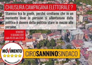 Il candidato del Movimento 5 Stelle Ciro Sannino ha invece giocato d’anticipo con una iniziativa che ha visto schierati consiglieri regionali e portavoce grillini già mercoledì. Oggi invece ha annunciato che girerà a piedi per la città e tra la gente.