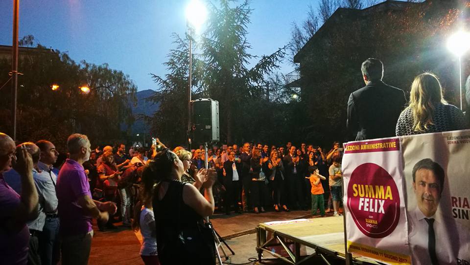 Lo slogan «Ripartire si può», due liste (Rianna Sindaco e Summa Felix), volti nuovi, giovani professionisti e appassionati sostenitori, ad attorniare il candidato sindaco sul palco nella piazzetta di Rione Trieste, il luogo che Salvatore Rianna (già consigliere comunale e poi assessore a Somma Vesuviana, oggi delegato alle politiche sociali nella giunta del sindaco Luca Capasso ad Ottaviano) ha scelto per lo start della campagna elettorale. Pochi volti noti alla politica nelle sue liste ma, comunque sia, il candidato precisa subito: «Non troverete qui nessuno che abbia un minimo di responsabilità per lo stato disastroso in cui oggi versa Somma Vesuviana».
