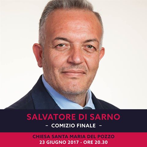 Questa sera, venerdì 23 giugno, nei pressi della chiesa di Santa Maria del Pozzo, alle 20, 30, Salvatore Di Sarno terrà il comizio di chiusura della campagna elettorale.