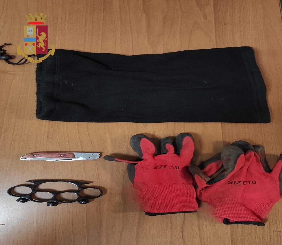 I fuggitivi, dopo pochi metri, grazie al supporto delle volanti dell’Ufficio Prevenzione Generale sono stati definitivamente fermati e, scesi dall’auto, sono stati bloccati dopo una violenta colluttazione; inoltre, nella vettura sono stati rinvenuti un coltello a serramanico e un tirapugni.