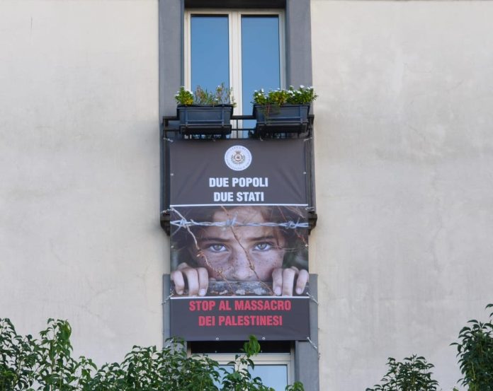 Un messaggio forte e chiaro campeggia oggi sulla facciata del Municipio di Pomigliano d’Arco (Napoli), dove è stato sistemato un manifesto con la foto di una ragazzina che si affaccia tra il filo spinato e la scritta “Due popoli due Stati: Stop al Massacro dei Palestinesi”. L’iniziativa, voluta dall’amministrazione comunale guidata dal sindaco Raffaele Russo, segue l’adesione e la partecipazione ufficiale del Comune alla manifestazione cittadina di sabato scorso, quando migliaia di persone hanno invaso le strade della città per chiedere giustizia e pace in Medio Oriente. Con questo gesto simbolico, fanno sapere dal Comune, l’amministrazione ha voluto ribadire con forza la propria condanna per le stragi di civili, donne e bambini, e al tempo stesso rafforzare l’appello per una soluzione politica duratura: due popoli, due Stati. La presa di posizione della Città di Pomigliano si inserisce in un clima di crescente mobilitazione internazionale, che chiede con urgenza la fine delle violenze e il riconoscimento dei diritti dI entrambi i popoli.
