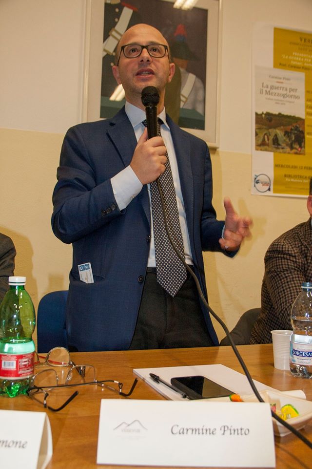 Mercoledì 12, a Sant’Anastasia, invitato dall’ Associazione “Vesevus”, il prof. Pinto ha parlato a un pubblico folto e interessato del suo libro “La guerra per il Mezzogiorno-Italiani, borbonici e briganti (1860- 1870)”, e ha illustrato il compito dello storico, che deve difendere la sostanza dei fatti dalle menzogne e dalle mandrie di “bufale” che oggi si muovono sui “social”. Il ruolo dell’interpretazione. Gli errori fatali dei Borbone e il tentativo antistorico di impedire che si realizzasse il modello “borghese” progettato da Murat.