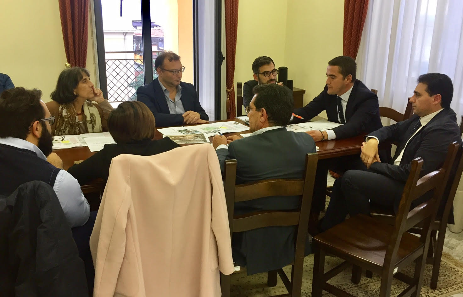 Un tavolo d’intenti con i rappresentanti della soprintendenza, della Società Sogesid e il gruppo di professionisti che ha realizzato il Progetto “Materia” per la realizzazione del Parco, il responsabile dell’Area Tecnica comunale, Giuseppe Terracciano, oltre che l’Amministrazione rappresentata dal sindaco Francesco Ranieri, dall’assessore ai Lavori Pubblici, Franco Annunziata e l’assessore con le deleghe al Turismo e alla Cultura, Genny Falciano.