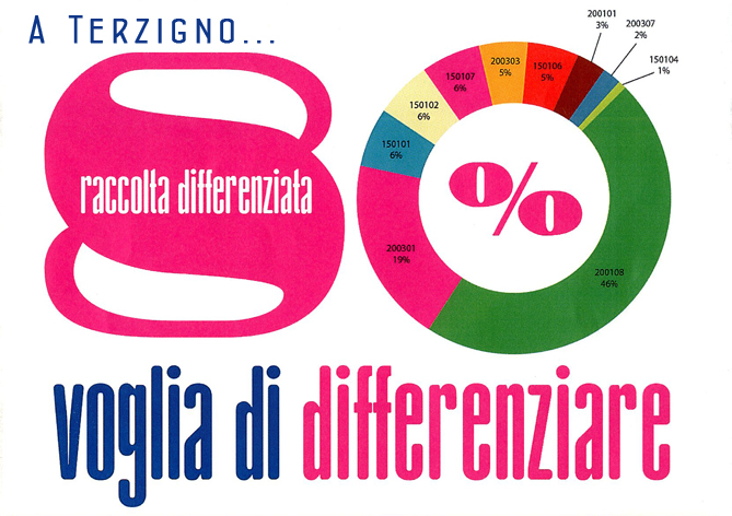 Grazie ad una spiccata attività di sensibilizzazione, con particolare attenzione alle periferie e con l’innovativo utilizzo dei cartelli informativi multilingue, oltre che a un’attività di controllo e alla variazione al calendario di conferimento, l’ultimo dato certificato della percentuale di raccolta differenziata giunge all’importante traguardo dell’80 %, precisamente 73% di differenziato, più il 7% di rifiuti dal cosiddetto “spazzamento e riassetto”.