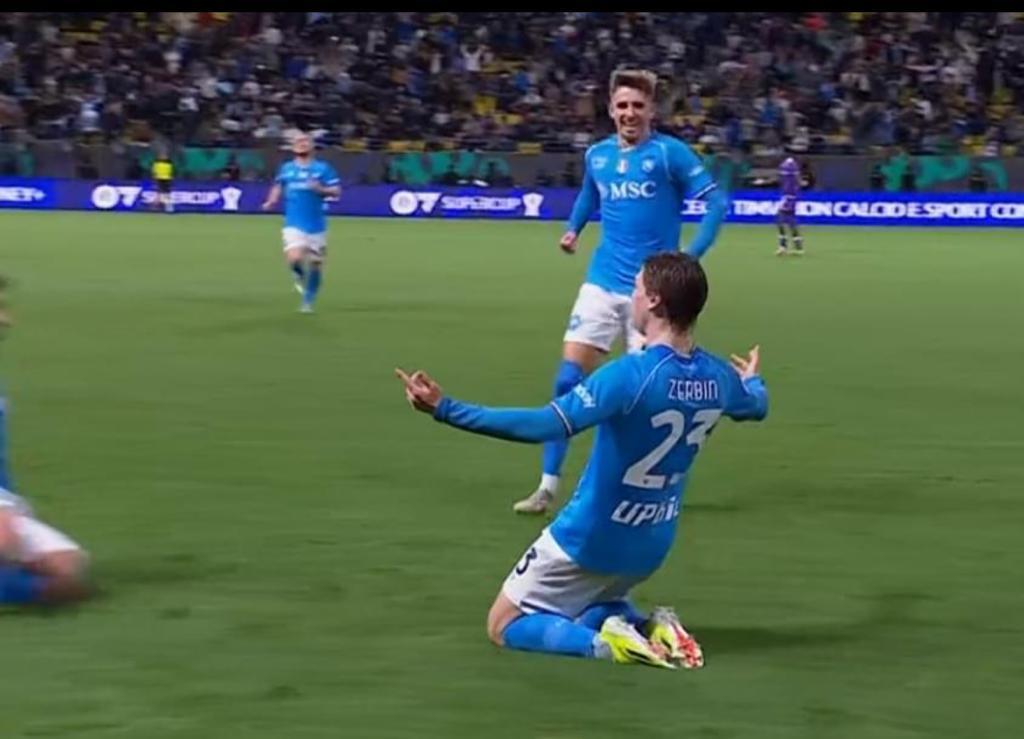 Nel triste scenario del semivuoto stadio di Riyadh, il Napoli trova la vittoria contro la Fiorentina e l’accesso alla finale di lunedì sera. La partita è stata decisa da un finale da film: in 3 minuti Zerbin segna il suo primo gol in maglia azzurra, sbatte la testa contro il palo in occasione del gol e poi segna una rete da urlo. Sarà una serata che difficilmente il ragazzo potrà dimenticare.